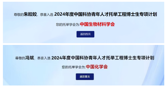 2024年12月30日,中国科协办公厅发布了2024年中国科协青年人才托举工程博士生专项计划首批入选者名单,共3226名同志入选。我们药剂学系在读博士研究生朱皎皎、药物化学系在读博士研究…