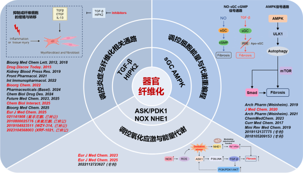 近年来,团队在器官纤维化、肺动脉高压和肿瘤领域基础研究方面持续产出原创性前沿成果,在Nat Commun、J Med Chem、Drug Discov Today等知名期刊发表SCI论文100余篇,为创新靶点发现、新药设计策略和机制挖掘奠定了坚实的科学基础。在此基础上,团队已获国内外发明专利授权30余项,多项核心专利完成成果转化,充分体现了从基础研究到技术创新的系统性突破。