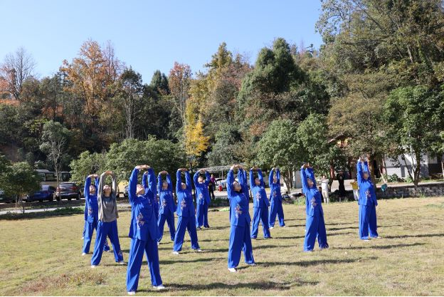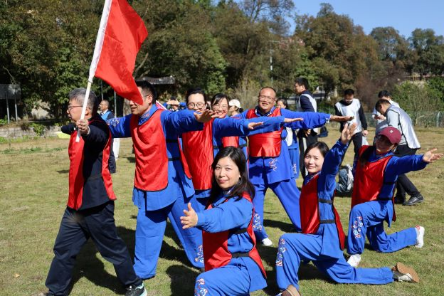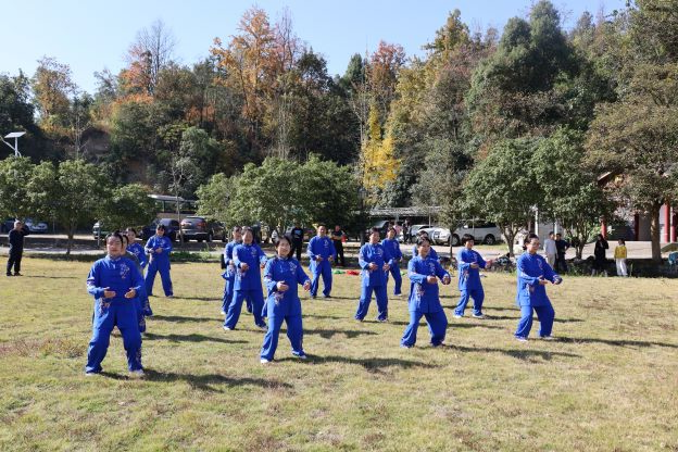 上午10时,队伍抵达开慧镇飘峰山庄。短暂的休整后,一场别开生面的八段锦表演拉开序幕。由我们在本月初bv1946伟德官网教职工八段锦比赛的教职工代表组成的表演队,动作整齐划一,刚柔并济,将传统养生功法的精髓展现得淋漓尽致,在他们的带领下,大家纷纷加入跟练,共同舒展筋骨,调理气息,场面蔚为壮观。此次表演与推广,是学院倡导“健康工作、快乐生活”理念的生动实践,旨在将八段锦这一健身瑰宝更好地融入教职工的日常生活。