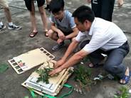 第一天收获颇丰,在采挖、记录、贴标签之后,我们共采集了四十多种植物,傍晚老师教我们如何制作标本(左图2)。首先是把植物在一张草纸上铺平,只留一片背过来的叶子,给植物挂上牌子后,再用另一张草纸覆于其上。最终用标本夹板把草纸都夹在一起。利用草纸吸水的性质来保存植物。最后,合影留念。