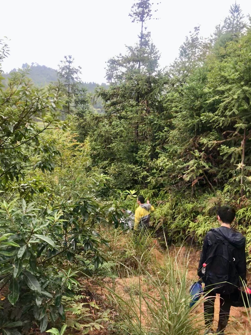 药博园后山尚未完全开发,这也是我第一次爬从未有人走过的山。看不到路,更没有路,茂密的植物长满了整个山头,老师在前方带队,同学们互相照应一步一个脚印的返回了山顶,这时一个团队相互协调互相帮助的优势逐渐体现出来。一路上同学们轻声的提醒“慢一点再慢一点”,“大家注意脚下路滑,别着急,小心一点”的话语在耳边此起彼伏,一点点渗入心房,温暖着每个人的心。在站稳时搭的那一把手,感动着每个人。不得不承认,这次野外实习真的拉近了同学们的距离。