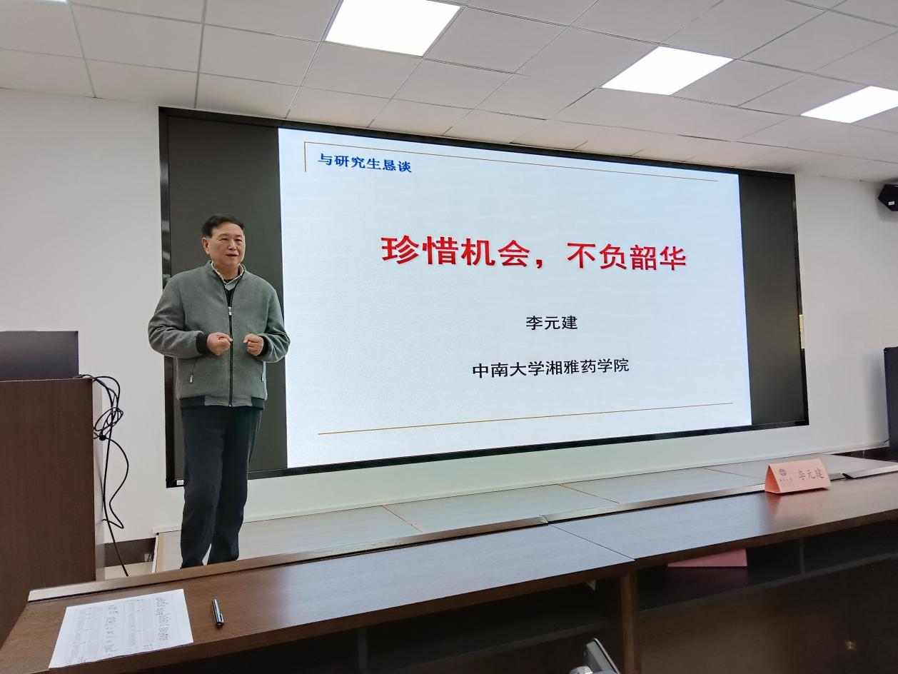 2025年11月19日下午,院关工委委员、五老辅导员、伟德bv1946官网原院长、博士研究生导师李元建教授为药学院今年新入学的研究生及学院学生代表做“珍惜机会,不负韶华”专题讲座,胡平安书记、唐媛副书记、桂玲智主任出席。